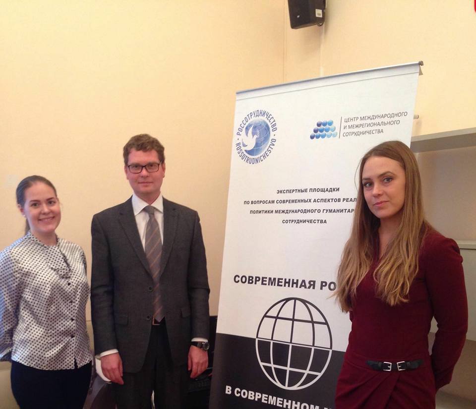 22 октября представители Совета молодых дипломатов МИД России Лилия Ромадан и Анна Хованцева приняли участие в работе экспертных площадок в рамках цикла организованных по инициативе Россотрудничества семинаров «Современная Россия в современном мире» Обсужден широкий круг вопросов реализации политики международного сотрудничества и расширение гуманитарной активности Российской Федерации с государствами-участниками СНГ, Республики Абхазии и Южной Осетией. Особое внимание уделено вопросам взаимодействия со СМИ и обеспечению информационного сопровождения политики Российской Федерации.