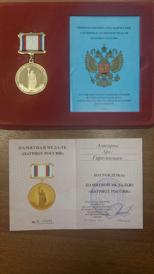 Поздравляем первого заместителя Председателя Совета молодых дипломатов МИД России Арега Агасаряна с памятной медалью "Патриот России".