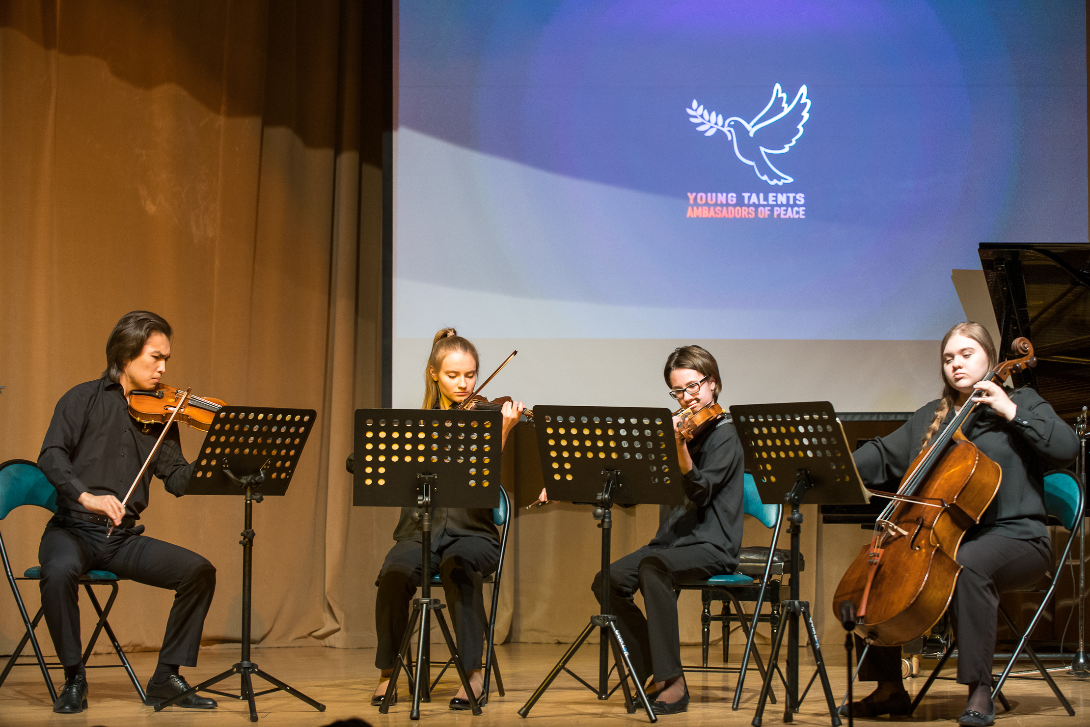 Музыкальную программу вечера составили выступления молодых музыкантов – лауреатов Международного юношеского конкурса имени П.И.Чайковского и других конкурсов: Рахат-Би Абдысагин (композитор, Казахстан), Молодежный квартет Чайковского (Россия), Алисия Левина (фортепиано, Россия), Руслан Турунтаев (скрипка, Казахстан), Хироки Накаяма (фортепиано, Япония), Мария Андреева (скрипка, фортепиано, Россия) и Святослав Оводов (композитор, Россия).