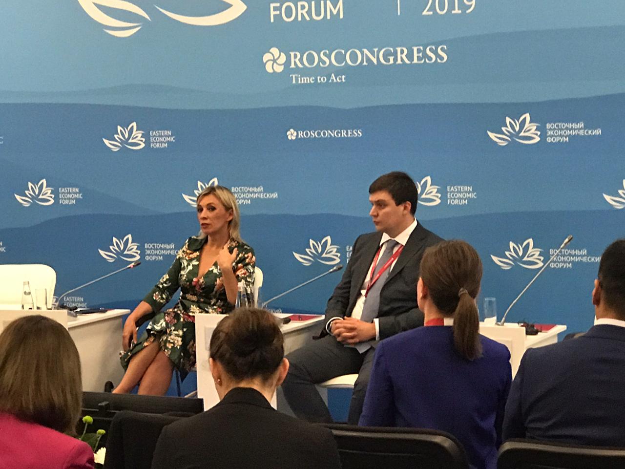 В мероприятии СМД приняла участие официальный представитель МИД России М.В.Захарова. Состоялись продуктивные встречи в формате вопрос-ответ с заместителем министра по развитию Дальнего Востока и Арктики А.В.Крутиковым, ВРИО вице-губернатора Приморского края К.С.Богданенко, Первым заместителем директора Федерального агентства по привлечению инвестиций и поддержки экспорта Министерства РФ по развитию Дальнего Востока и Арктики А.И.Донцом, заместителем проректора по УВР ДВФУ Е.В.Харисовой, Президентом фонда «Стратегия будущего» С.Неверовым и помощником директора по молодёжной политике фонда «Росконгресс» Р.Чуковым. Гости презентовали программы комплексного развития региона как одного из динамично развивающихся и инновационных центров страны, отметили кардинальные изменения. Об инвестиционном потенциале Республики Татарстан рассказала руководитель Агентства инвестиционного развития Т.И.Минуллина.