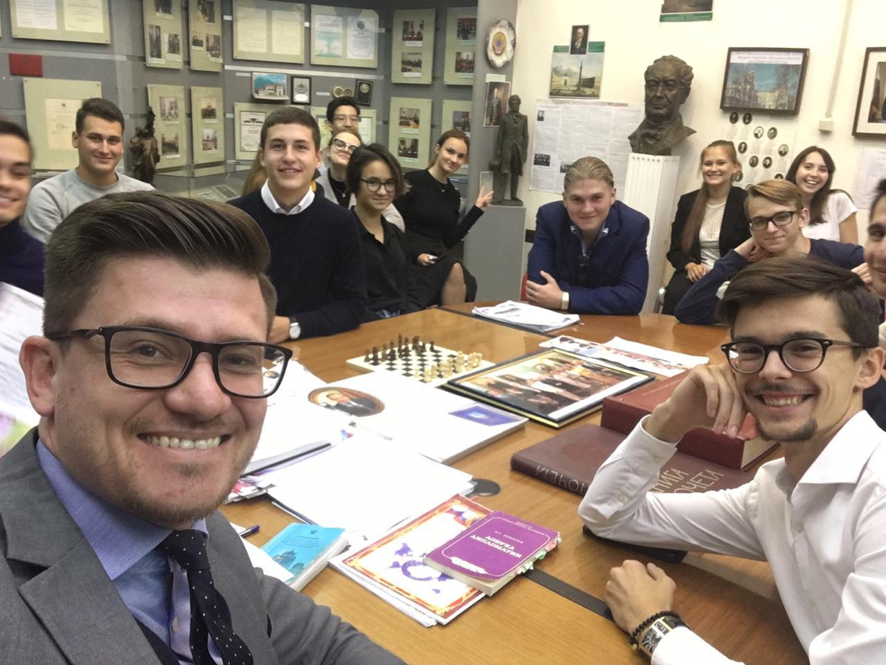 20 сентября член президиума Совета молодых дипломатов МИД России Алексей Деденкулов встретился со студентами-первокурсниками Дипломатической академии МИД России для того, чтобы в неформальной обстановке поговорить об особенностях профессии дипломата.
